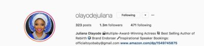 Maybe when she’s done promoting her book, she’ll grace our screens again. Till then, what is Juliana Olayode?