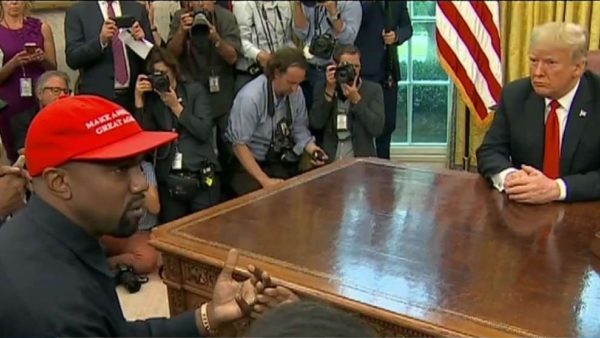 American rapper and G.O.O.D Music Boss, Kanye West wore his controversial MAGA hat today as he was hosted to lunch on Thursday afternoon by United States President, Donald Trump where both men had discussions bothering on North Korea, bipolar disorder, criminal justice among other topics.