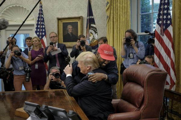 At the end of the meeting, Kanye West got up from his seat and said he loved Trump before walking over to give the President a hug.