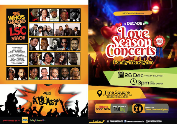On Friday, December 26, 2014, the 10th edition of Love Season Concert will hold in Lagos at Time Square Event Centre, Ikeja, Lagos with superstars like Asu Ekiye, Tosin Martins, Sammie Okposo, Lara George and a host of other stars in the line-up.