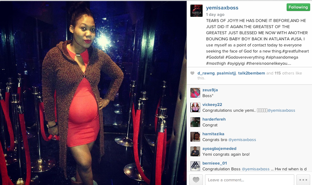 Making the announcement via Instagram, Yemi wrote: ‘Tears of joy, He has done it before and he just did it again. The greatest of the greatest just blessed me now with another bouncing baby boy back in Atlanta USA. I use myself as a point of contact today to everyone seeking the face of God for a new thing.#greatfulheart #Godofall #Godovereverything #alphaandomega #mosthigh #oyigiyigi #thereisnoonelikeyou.’