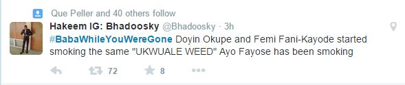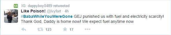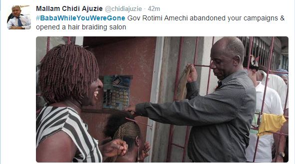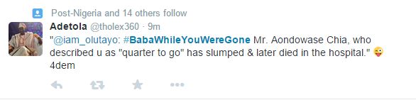 Trending on Twitter presently is #BabaWhileYouWereGone which has some pretty rib-cracking tweets.