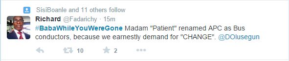 Following the return of the APC presidential candidate, Muhammadu Buhari to the country today, March 6, 2015 from his trip to England, the Nigerian social media space has been agog with some very hilarious tweets.