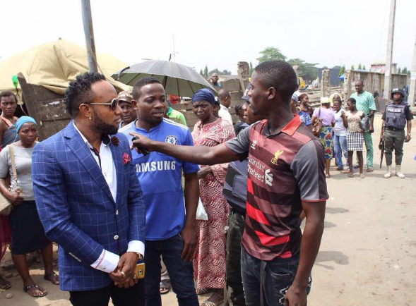 It was where he met Promise, a ‘shoe–rack’ hawker who said he’s been hawking for over six years and the singer promised to help him.