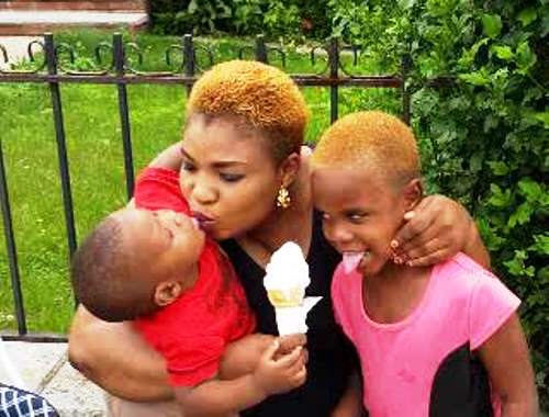Ex-beauty queen and ex-president of the Actors Guild of Nigeria, Ibinabo Fiberesima has four sons and a cute daughter, Zino Amata (whom she had with popular actor and director, Fred Amata).