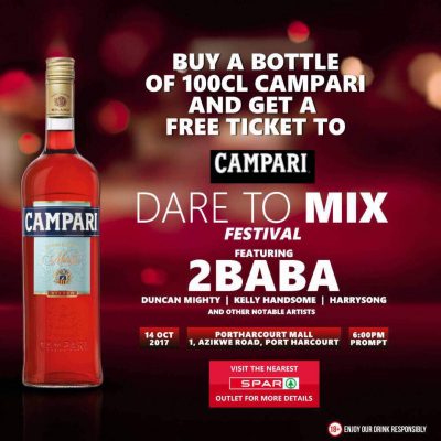 Campari, which is currently rewarding consumers with amazing prizes in its annual BuyNWin promo is giving fans a chance to attend the festival for free. Just walk into any Spar outlets in Port Harcourt, buy a bottle of Campari and automatically win a ticket.