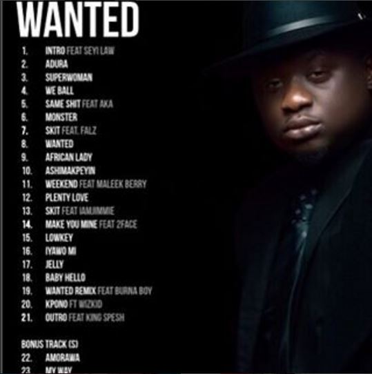 The album has 17 songs, 4 skits and 2 bonus tracks. The highly anticipated album features African pop star, 2face Idibia, South African raper, AKA, producer Maleek Berry and Star Boy boss, Wizkid while Burna Boy also dropped his flow on the remix of the cover title, Wanted.