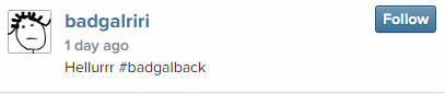 Since a controversial picture that sparked an online outrage made her abandon her Instagram page since May 3, 2014, Rihanna finally made her return on November 1, 2014.