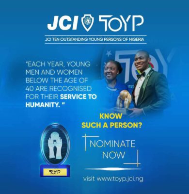 Nominations for 2018 JCI Ten Outstanding Young Persons (JCI TOYP) of Nigeria has commenced and so I invite you to kindly nominate young people who are doing amazing things in changing our world. To nominate, please visit: www.toyp.jci.ng