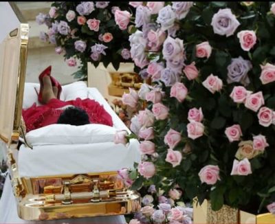 Little wonder then, that at the public viewing of her body in her hometown of Detroit before a private burial later the week, the Queen was dressed in a ruffled red dress, complete with red Louboutin shoes on her feet- which were crossed as she lay in a gold casket.