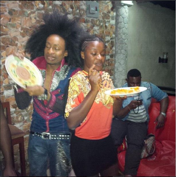 Blame it on the alcohol? At Nollywood actress, Chacha Eke and husband, Austin Faani‘s mini house party at their residence in Lagos recently, eccentric OAP and model Denrele Edun was pictured grabbing the actress seductively from behind.