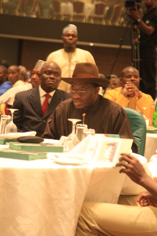 Once in the hall, everything settled as guests took their seats and the President walked in heavily guarded. The National Anthem was sung and the host of the day, Rhythm 93.7 on-air-personality, Nanya went straight to the proceedings of the day. Nanya went on a small journey into the past highlighting the many positions that have been occupied by the youths, from Yakubu Gowon becoming the Head Of State at 32 to other respected Nigerians who at a young age had accomplished feats in their careers. Amongst the many things he highlighted about President Goodluck, was that the President’s Facebook fan page was the second most popular for a President, after US president Barack Obama’s.