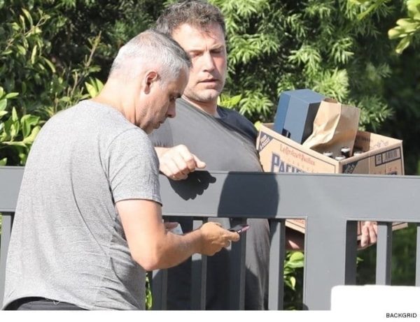 A new picture of Affleck which circulated the web showed a delivery man handing him a box filled with liquor, something a recovering alcoholic should not be taking delivery of.