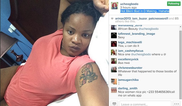 The actress who is known for role she played in the movie ‘The Laptop’ in 2008, took to her Instagram account today, February 28, 2015 to post a raunchy photo, where she is seen laying on bed with her thigh on display.