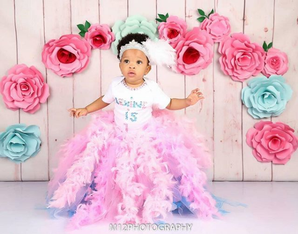 Nigerian footballer Joseph Yobo and his beauty queen wife Adaeze welcomed their third child and first daughter Lexine a year ago and the baby is one today.