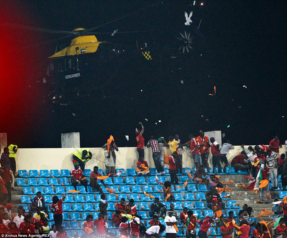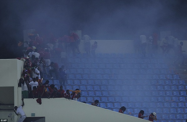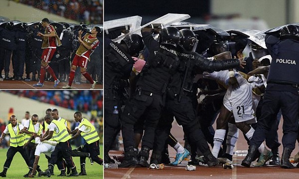 But the game later continued after the security personnel came to the rescue of the Ghana team to combat the angry Equatorial Guinea fans with tear-gas after which they escorted the Black Stars and fans off the pitch