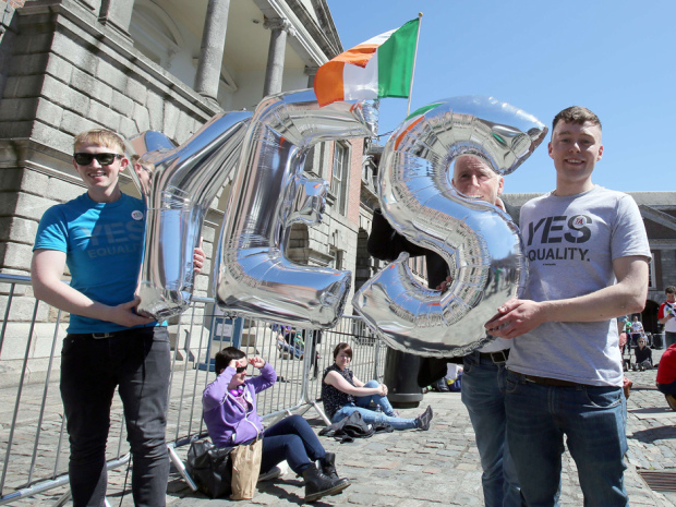 ‘Yes’ supporters crowded into the courtyard of Dublin Castle to watch in blistering sunshine as results trickled in from around the country were shown on a large screen. They cheered with joy as the final tally was announced and then burst into a rendition of the national anthem.