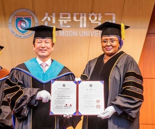 Wife to the President of Nigeria, Aisha Buhari has been awarded an honorary doctorate degree in Public Administration from Sun Moon University, South Korean.