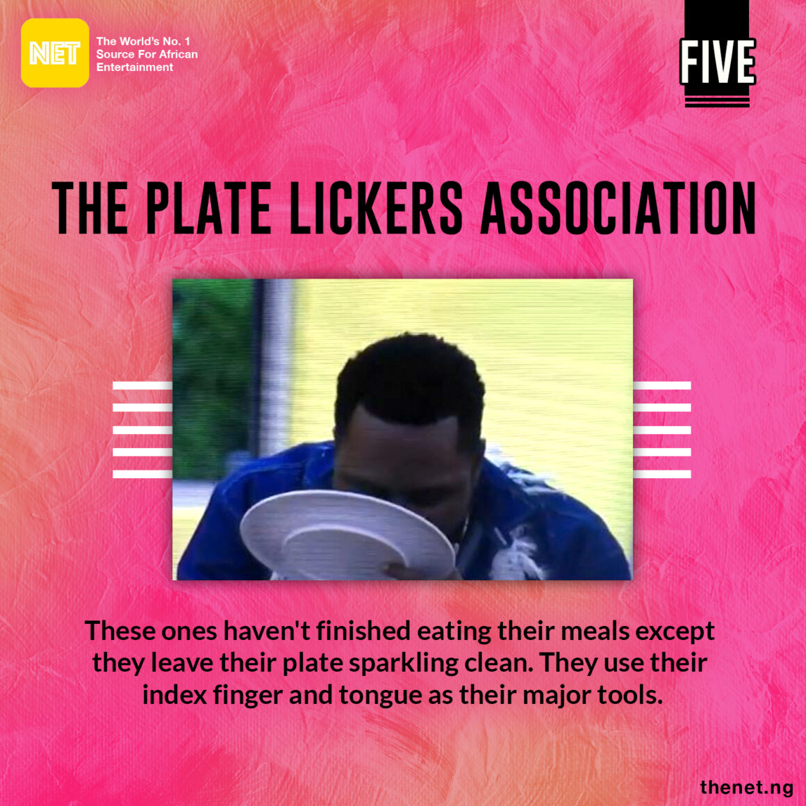 These ones haven’t finished eating their meals except they leave their plate sparkling clean. They mostly use their index finger to clean up the plate, lick the finger, then proceed to lift their plate and lick it with their tongue, very skillfully. This makes them close associates with the finger lickers.