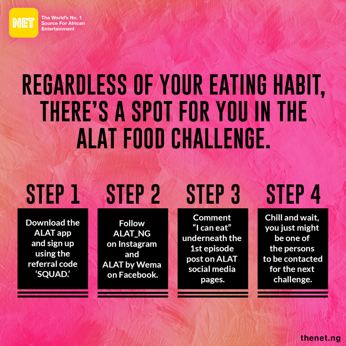 Show up unbothered and ready to be crowned the ultimate foodie who will walk away with ₦100,000 for the final episode of the ALAT Food Challenge. Download the ALAT app and sign up using the referral code ‘SQUAD’ to get a chance at becoming a challenger.