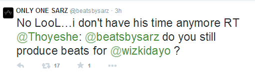 Last week, one of Wizkid’s favourite music producers, Sarz fuelled controversy when he hinted of a brewing beef between him and the Starboy boss via a Twitter chat.