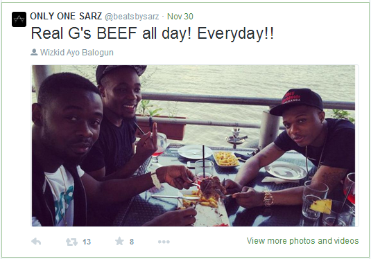 Then just yesterday, December 1, 2014, the producer shared a recent picture of himself and Wizkid having a meal together with the caption: ‘Real G’s Beef all day, everyday’ which effectively quashed all thoughts of a running battle between them.
