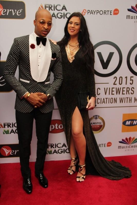 Nollywood actor and model, IK Ogbonna and his baby mama to be Sonia Morales stormed the red carpet of the 2015 Africa Magic Viewer’s Choice Awards (AMVCA) .