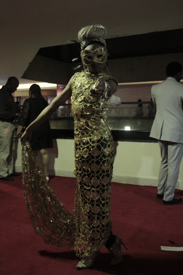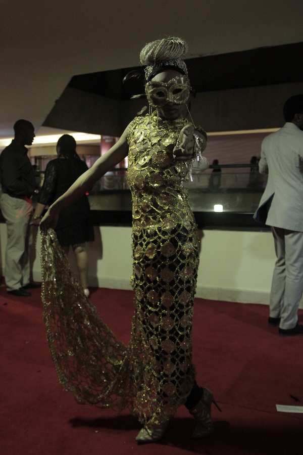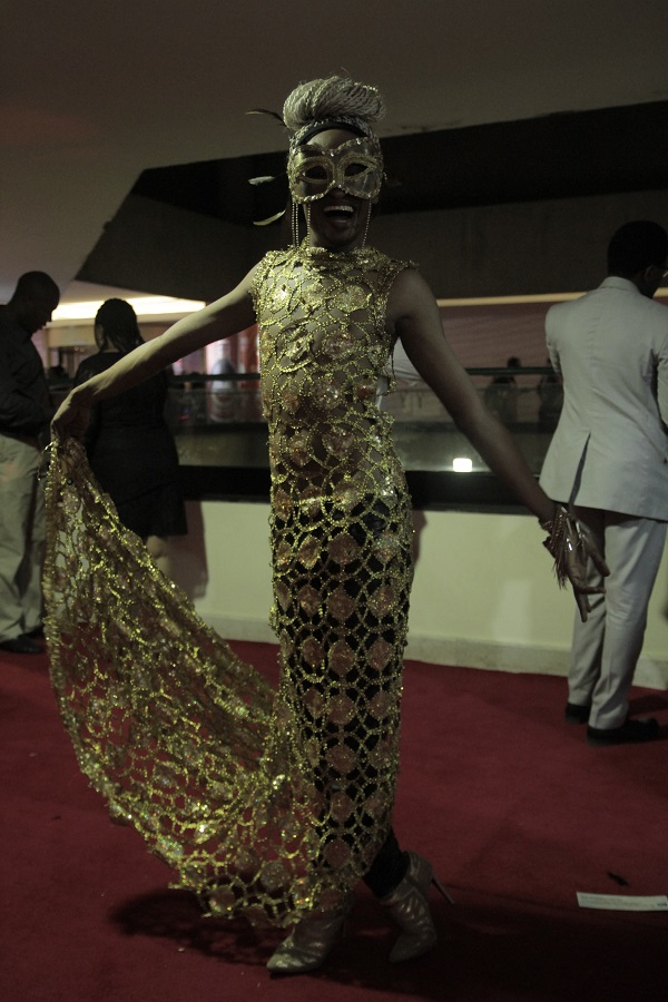 Talk about taking weirdness to a new level, the Channel O VJ wore a revealing, totally feminine gold-coloured gown which has been described by many as outrageous. He spots a blonde hair along with it and a carnival mask but you can be sure he submitted himself to paparazzi even without asking.