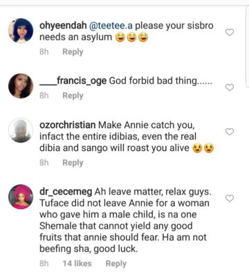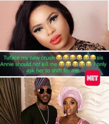Here’s what he wrote: “Tuface my new crush, sis Annie should not kill me. I only asked her to shift for me.”