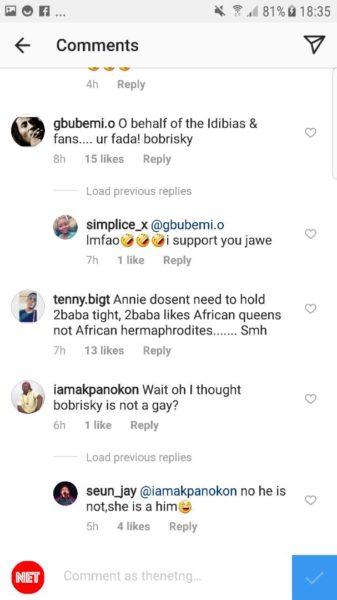And now, Nigeria’s own male Barbie doll is here putting his/her eye on Annie Idibia’s man trying to snatch him (LMAO). He won’t even survive this if he tries.