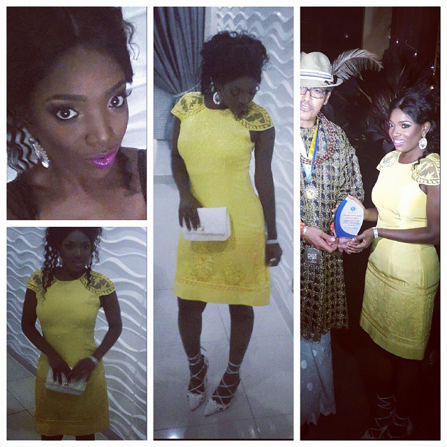 She posted this picture on Instagram while receiving the award and captioned it: ‘About last night. .. At the Leadership Awards of Excellent/World Changers.. Receiving The award on behalf of a “world Changer” the best ** Mr Innocent Idibia “2BABA” .. styled by @s_b_youme make up @flawlesstouchmakeover’
