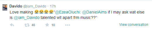 The fan further quizzed, ‘like seriously love making..u never jam babe wey go make u run’ and Davido replied once again: ‘How?? Never! BADDEST.’