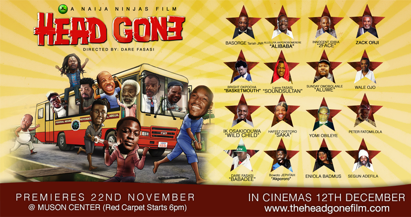 If the impressive list of stars featured is anything to go by, Head Gone, which features acclaimed king of Nigerian comedy, Ali Baba, Basorge Tariah Jnr, Pop Icon, 2face Idibia; crazy comedian, BasketMouth; IK Osakioduwa (OAP & Big Brother Africa Host), Hafeez ‘Saka’ Ayetoro, Zack Orji, Sunday Omobolanle (Papi Luwe), Eniola Badmus, Sound Sultan, Akpororo, Baba Dee, Wale Ojo, Peter Fatomilola, Tunji Shotimirin, Yomi Obileye, Segun Adefila, Yinka Akinlawon, Gbenga Windapo, Sunkanmi Omobolanle and others, will be one of the biggest comedy films in Nigeria yet.