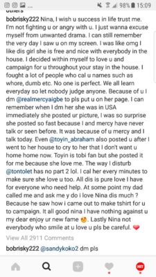 Nina, however, apologised to him, explaining that she never knew that Bobrisky and Toyin Lawani had issues adding that she would not like to be involved in their issues.