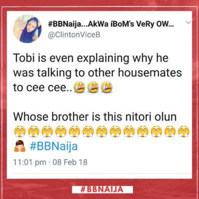 Since then, BBNaija fans, as well as Tobi’s fans, have taken to Twitter to drag Cee.C for enchanting Tobi in a love web. While some are of the opinion that Cee.C is a manipulative person, others think she is just playing her game.