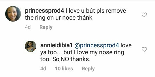 In the same manner, Annie also politely responded, appreciating the fan love but also saying she loved her nose ring also.