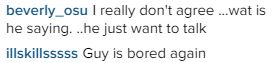 Leading the onslaught against Etcetera is former BBA housemate, Beverly Osu who wrote, ‘I really don’t agree …wat is he saying. ..he just want to talk’