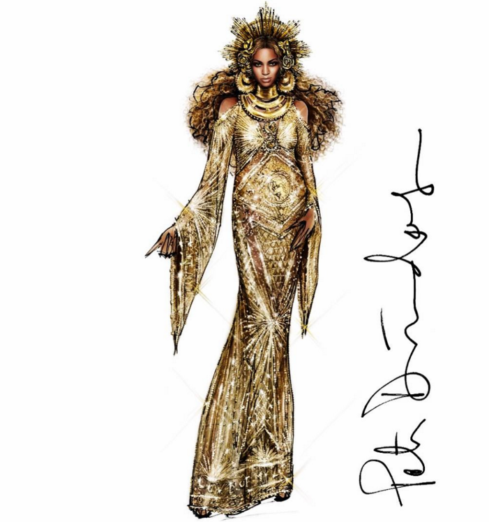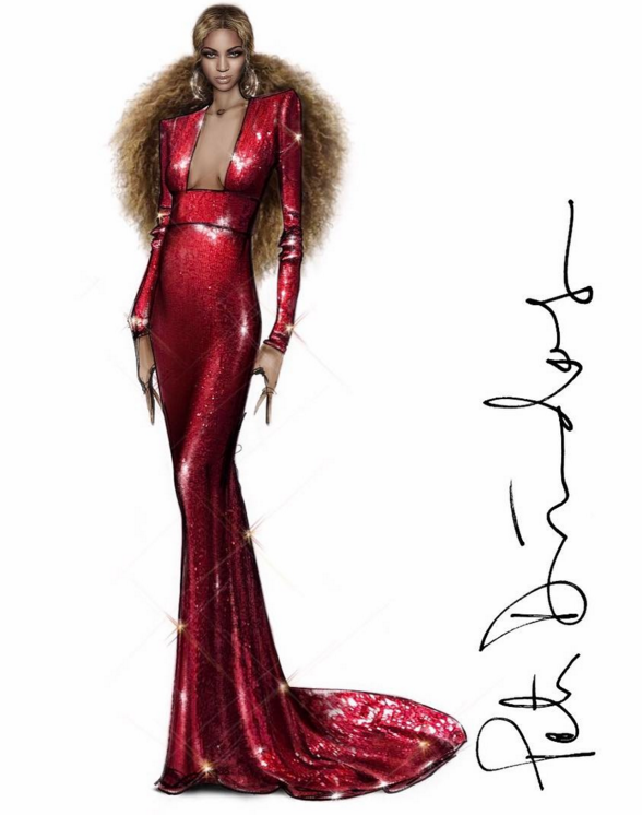 You can checkout Peter’s sketches of Beyonce’s iconic look before Sunday nigh’s Grammy.