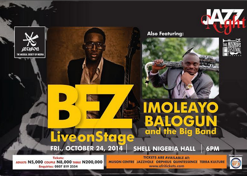 The Grand Finale of the MUSIQuest, the annual talent competition for youths, will feature the best candidates from the earlier stages of the competition in a concert on Thursday, October 23, 2014 while Jazz Night on Friday, October 24, 2014 would be headlined by soul singer, Bez while the opening act will be a MUSON alumnus – Jazz Saxophonist, composer and arranger, Imoleayo Balogun.