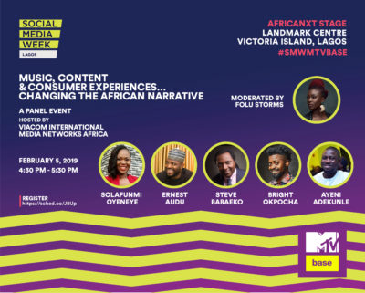 Ayeni will be joined on the panel by Advertising guru, Steve Babaeko; Comedian, Basketmouth; Channel Manager, MTV Base, Solafunmi Oyeneye and Talent Manager, Ernest Audu. They will be discussing “Music, Content & Consumer Experiences Changing The African Narrative” during the session that will be hosted by MTVBase presenter, Folu Storms.