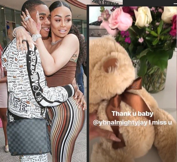 Blac Chyna‘s 19-year-old boyfriend, rapper YBN Almighty Jay, surprised her at home by sending her a bouquet of flowers and a Teddy Bear, just to make sure she feels special while he is away working.