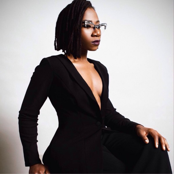 On air personality, Toolz is a regular for all-black outfits. Here, she wears a plunging neckline floor-length dress with sheer sleeves and embellishment.