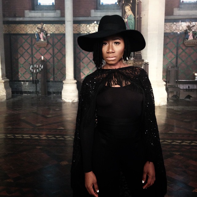 Multi award-winning actress, Omotola Jalade Ekeinde’s all-back affair comes boldly with her peace sign. She wore a black jacket on a black pant and finished it up with black shoes, bag and shades.