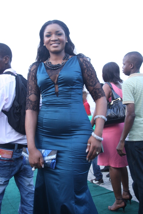 Star actress, Omotola Jalade-Ekeinde was dressed up in a green flowing gown, but came alone to the surprise of many.