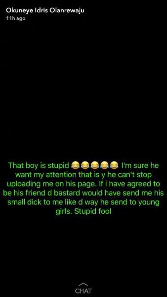 We’ll pretend not to know who and just go right to what Bobrisky had to say about this person who sends photos of his penis to ‘young girls’, ‘one of his nut is missing’ and is ‘so confused’.