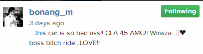 A look through her Instagram timeline reveals that she’s been crushing on the same car for a while now. A few days before she eventually bought the ride, she once shared a picture of the car with the caption: ‘This car is so bad ass!! CLA 45 AMG!! Wowza. boss bitch ride…LOVE.’