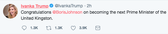 While his wife erroneously tweeted “Congratulations Boris Johnson on becoming the next Prime Minister of the United Kingston.” She has now deleted the tweet which may have made her a butt of jokes on Twitter.