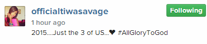 The singer made the special announcement just minutes ago in early hours of the New Year, January 1, 2015 with a picture of her slightly protruding belly with her husband, Tunji Balogun in the background.