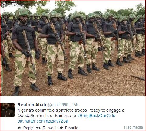 Abati wrote on his Twitter as he posted the photo; ‘Nigeria’s committed &patriotic troops ready to engage al Qaeda/terrorists of Sambisa to #BringBackOurGirls‘.