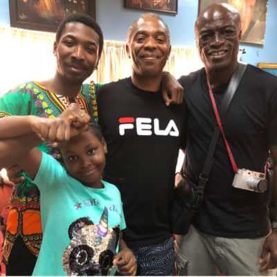 The singer who is most famous for his 1996 Grammy award-winning song, ‘kiss from a rose’, was a guest of the Kutis today and although the reason for his visit is uncertain, his hosts, the legendary Femi Kuti and his sister Yeni Kuti confirmed his visit to The Shrine with photos on their Instagram accounts.